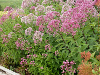 From that point and for most of the morning, we looked for plants at three different locations. Cuppa specifically wanted a Joe Pye (see above), a tall striking plant that we had in Sarnia. We were able to find one, actually two: a normal size tall one and a dwarf which we were told would make a lovely companion planting. After much dithering, we decided where to plant it and moved rocks and added soil to expand the garden. It's out back, which needs a lot of work still, but we'll be concentrating on the more desperate front for this year.