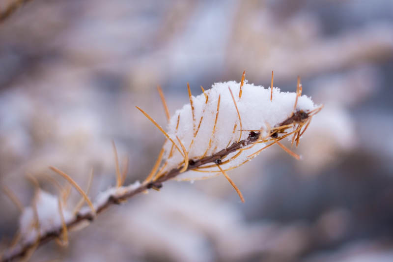 The tamarack looks like it is holding its hand out to catch a bit of snow....