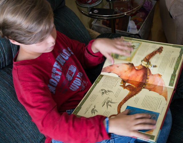 His sleepover present was a book, Dragonology, that he had seen when his cousin visited, and he fell in love with it. It was hard to get, but it arrived from the UK just before his sleepover after I had given up hope, thinking it had been lost in transit after more than a month of waiting.