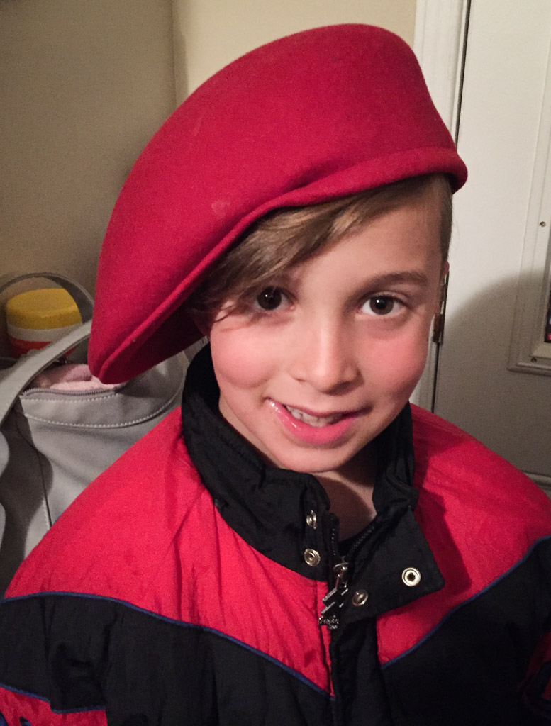 You already know from a previous post that we drove to see a razzle dazzle house. But what you didn't know is that the boy appropriated my chapeau. Since he looks far better in it that I do, I let him keep it on for the duration of that little trip.