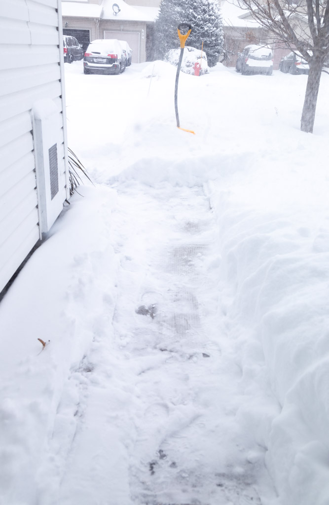 I went out to shovel a bit. We have a contractor, but they don't do the walk, and they can't get right up to the garage doors.
