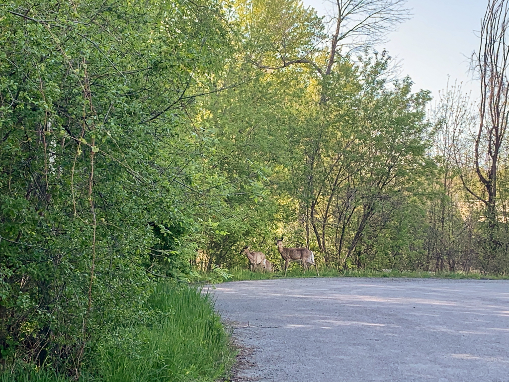But while I was in the parking lot. three deer ambled by, a mother with two young ones. They weren't that young, almost as big as Mom.