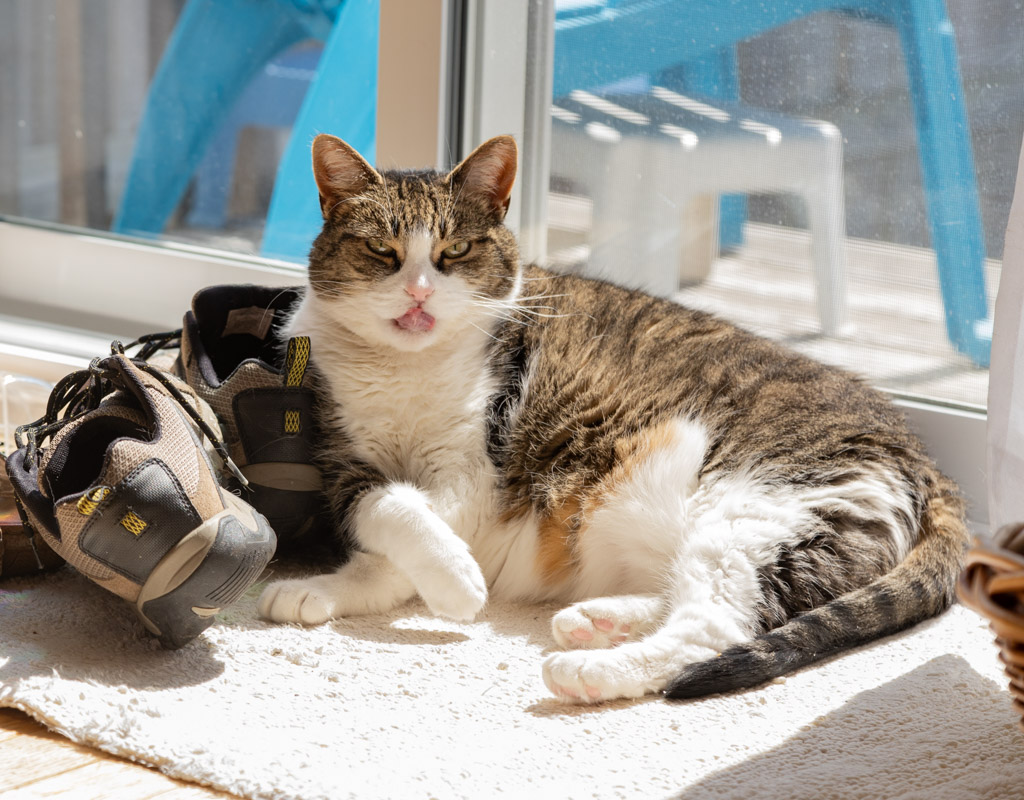 6. I agree with Beatrice. I think your shoes were taking up toom much of the sun spot so she just snuggled closer.