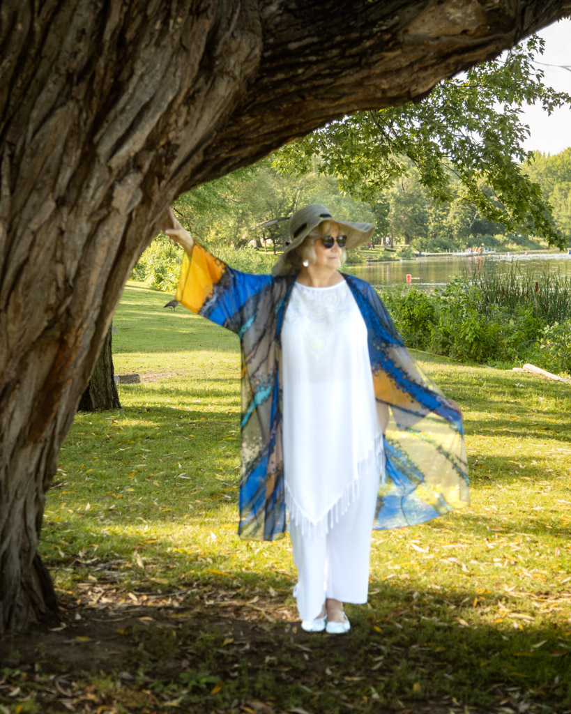 ReplyDeleteSue does have a penchant for style and admirably so as shown in this photo series. Not only that she wears the capes and shawls very well. The pastels in the first photo were lovely. And, you took your direction very well as a photo assistant!